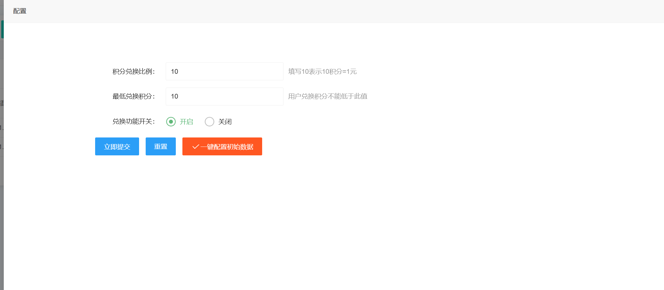 这是个积分兑换功能 比如1:10 积分兑换钱 1是1元 10是积分 可后台控制兑换比例
