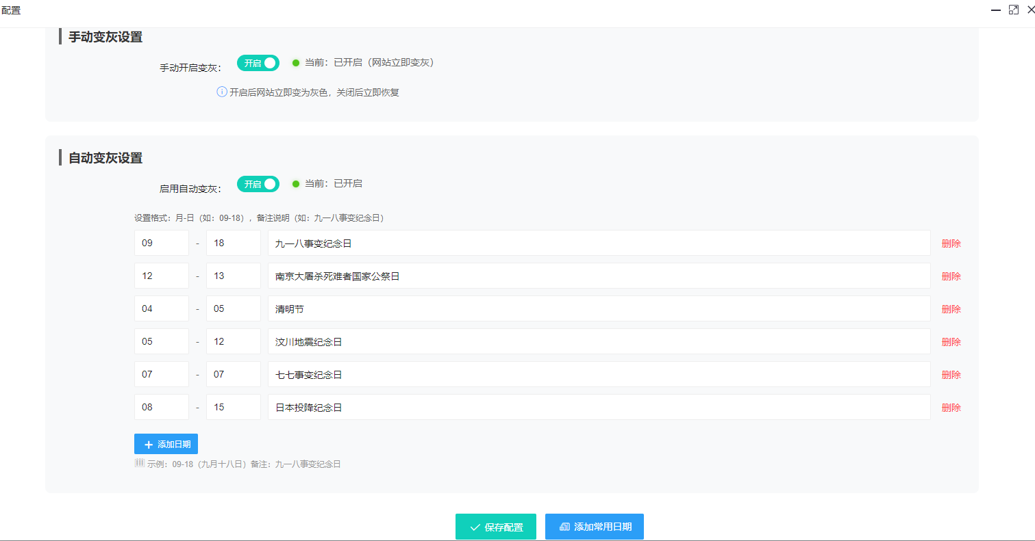 一键开启/关闭网站灰度效果,支持日期自动变灰